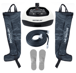 Прибор состоит из компрессора, к которому через шланги подключен специальный “сапог” с капсулами для воздуха. Этот “сапог” нужно надеть на ногу и компрессор будет подавать воздух, который за счет сжатия и разжимания выполнит лимфодренажный массаж. Воздух поступает от периферии к центру, повторяя естественное движение лимфы и ускоряя его.