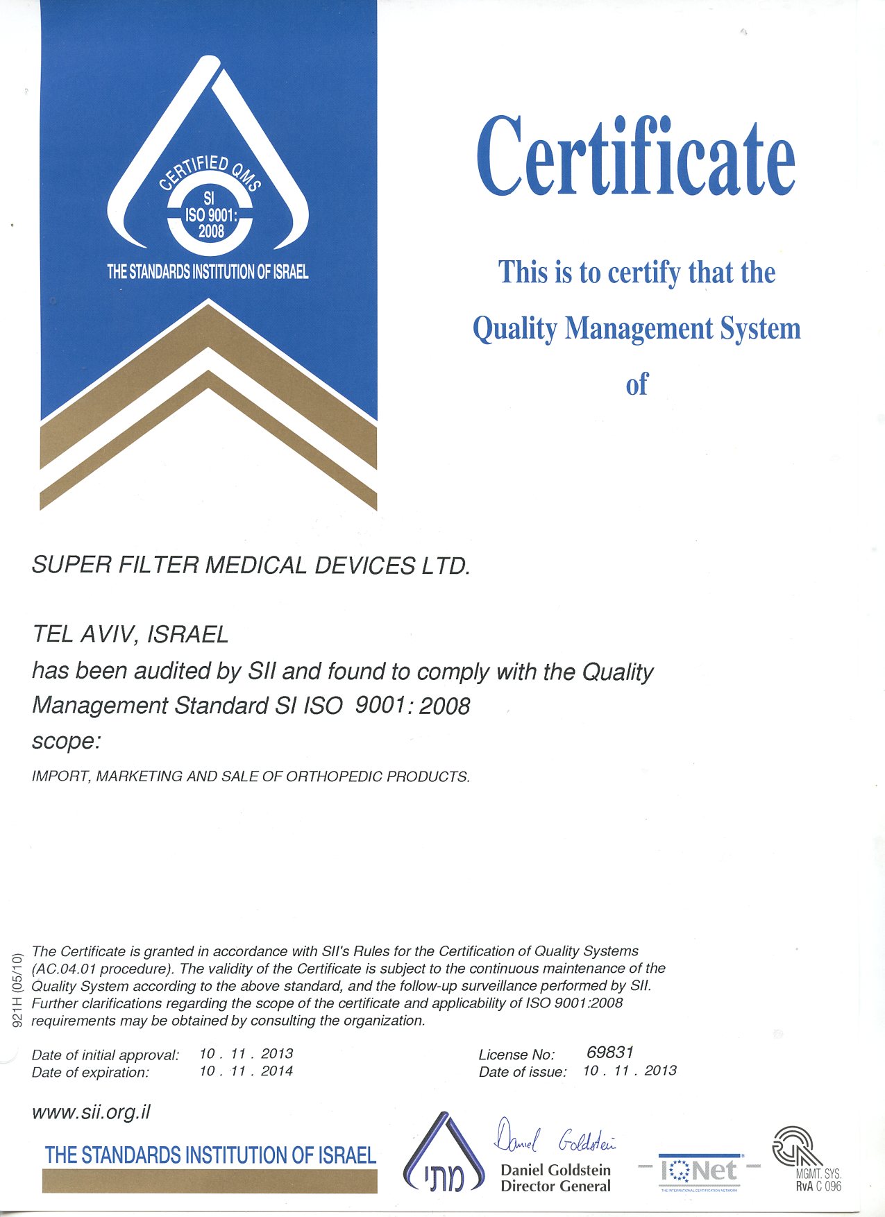 Сертификаты и патенты клиники Doctor Spine